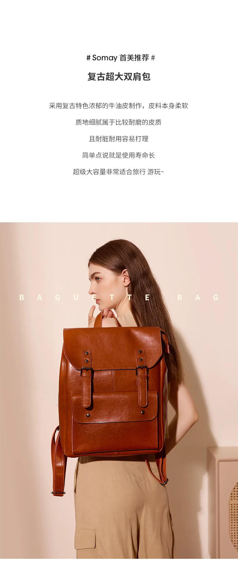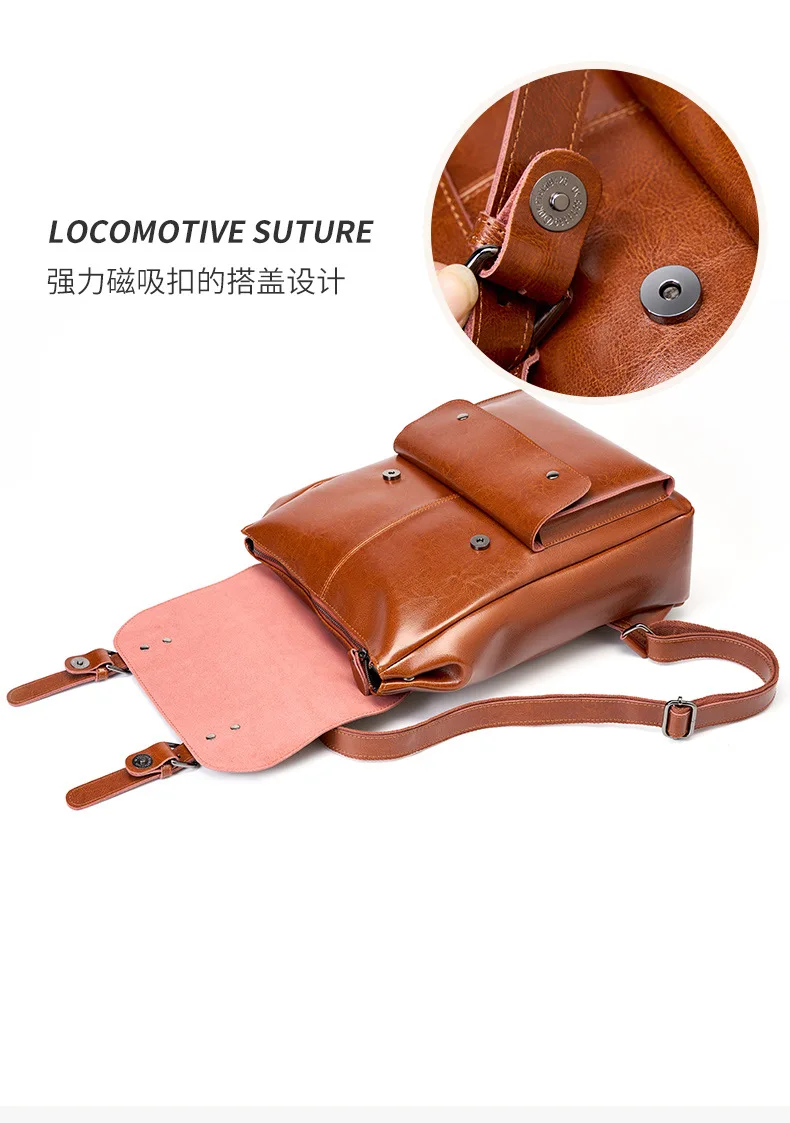 Genuine Leather Backpack for Women Durable Cowhide Laptop Bag 14 Inch Large Capacity Vintage British Style Unisex Full Leather