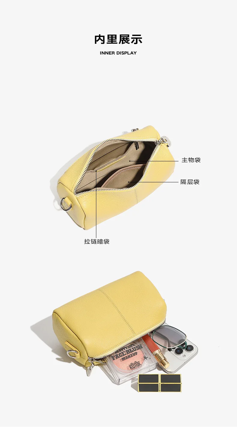 Cylinder Pillow Bag Soft Cowhide Shoulder Bag 2025 New Small Handbag Underarm Commuter Bag