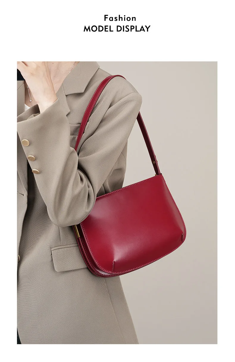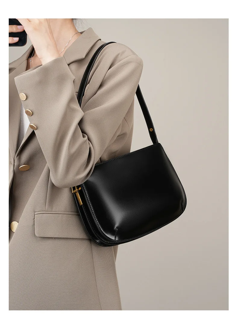 Elegant Genuine Leather Shoulder Bag for Women 2025 New Cowhide Simple Versatile Underarm Crossbody Handbag