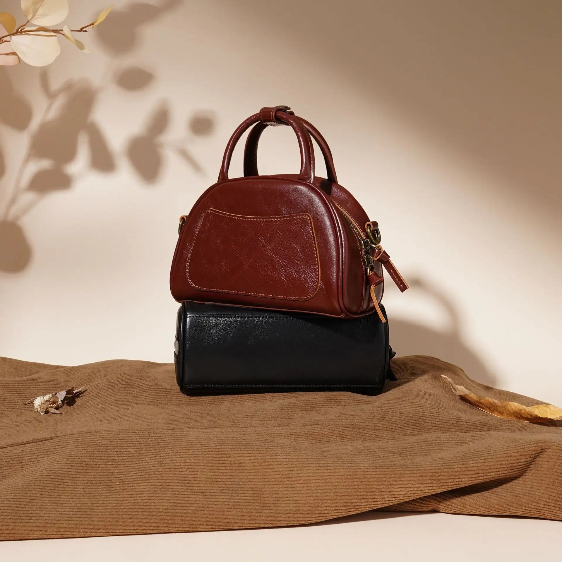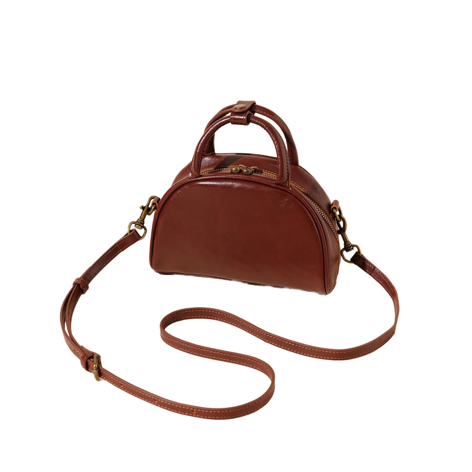 Genuine Leather 2025 New Retro Small Shoulder Crossbody Handbag Versatile Bowling Bag for Women