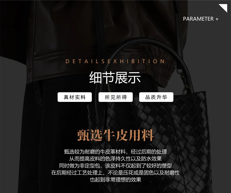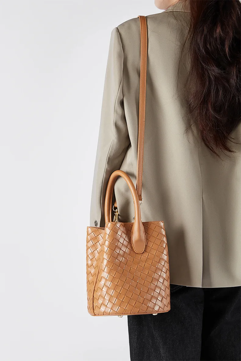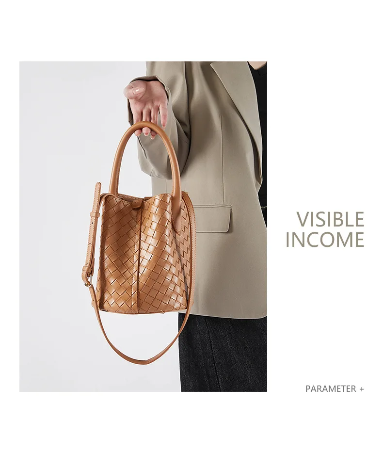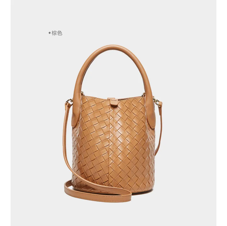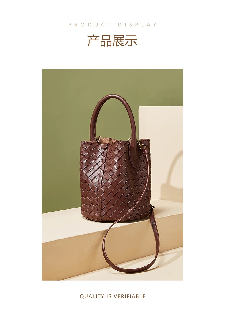 Women Genuine Leather Handbag 2025 New Woven Bucket Bag Shoulder Crossbody Tote Elegant Fashion Purse