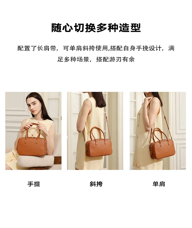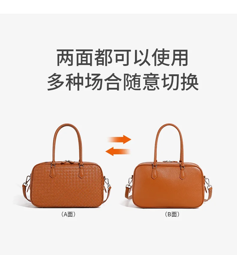 2025 Autumn Women Handmade Genuine Leather Woven Tote Shoulder Crossbody Bag for Work