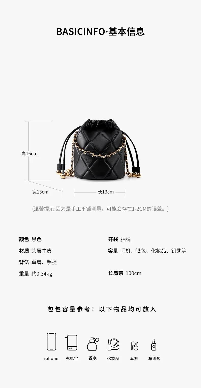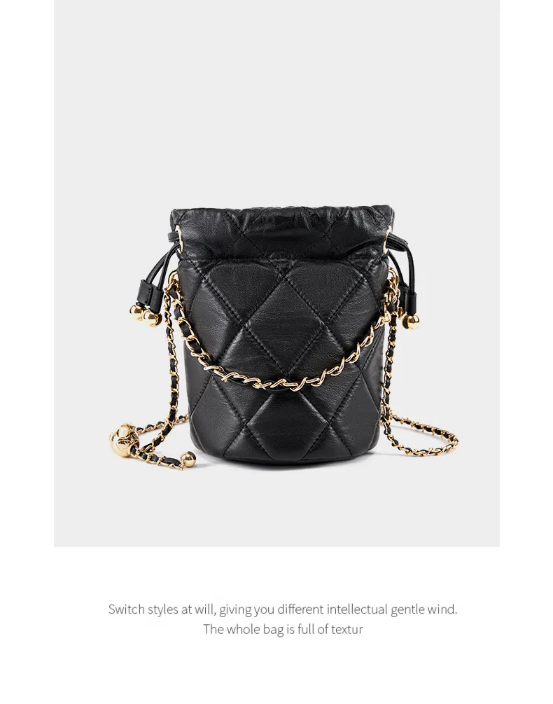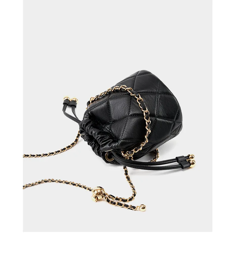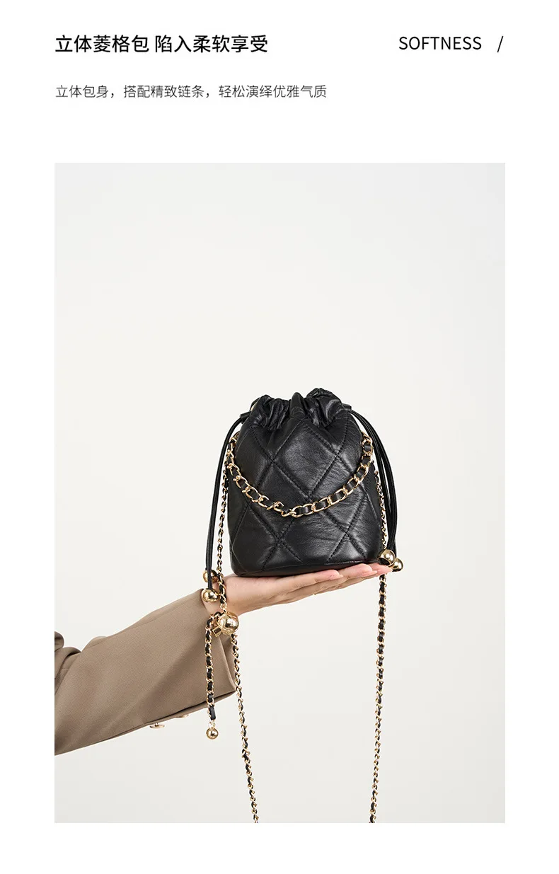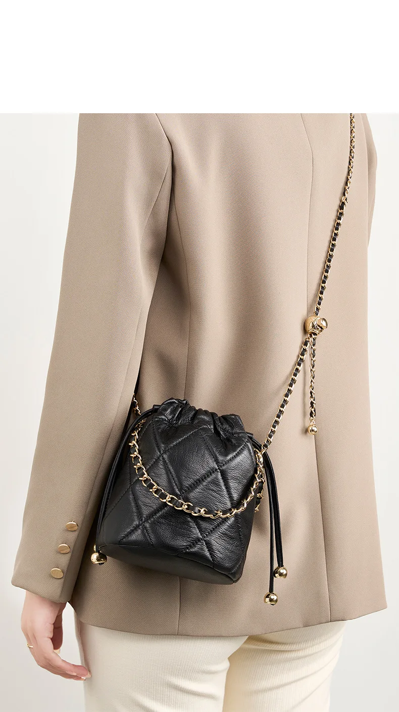 2025 New Crossbody Bucket Bag for Women, Elegant Versatile Genuine Leather Handbag with Small Chain