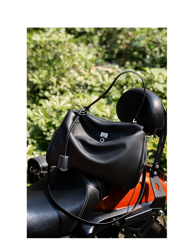 改良1,:市面皮料硬,手感不好,背起来没有坠下来的那种效果,皮料经过多样筛选,选择一款适合柔软质地的小牛皮打造,背起来坠坠的效果自然。