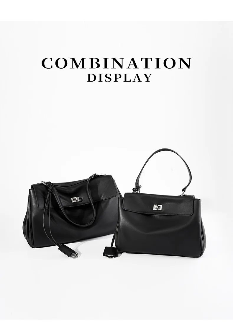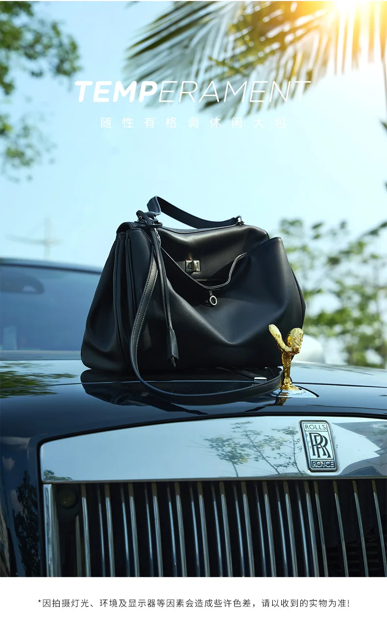 2025 New Large Capacity Smooth Calf Leather Shoulder Handbag with Lock Commuter Underarm Tote Bag