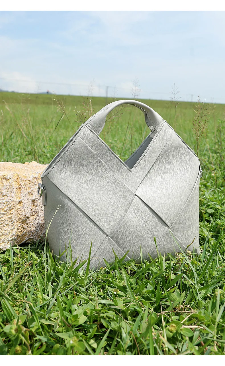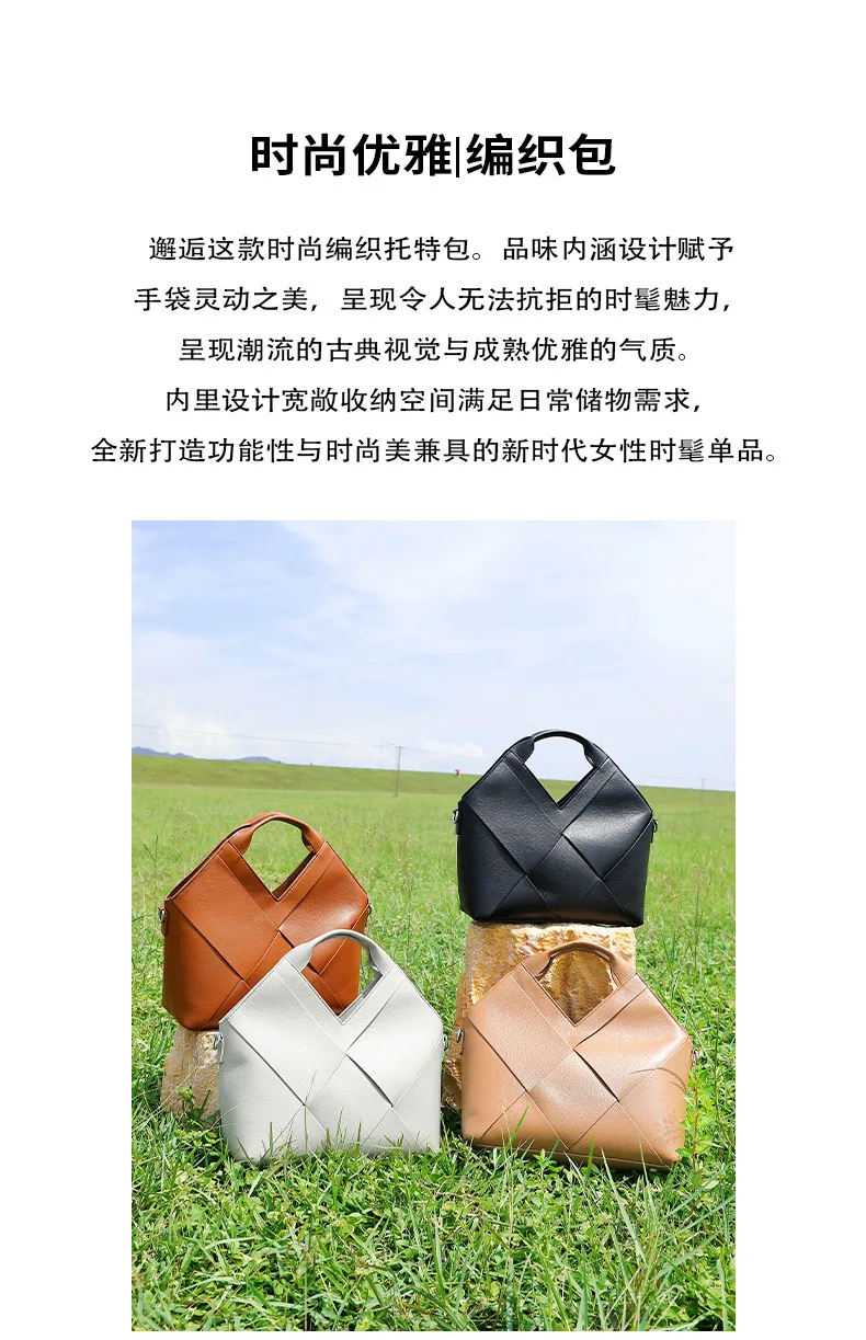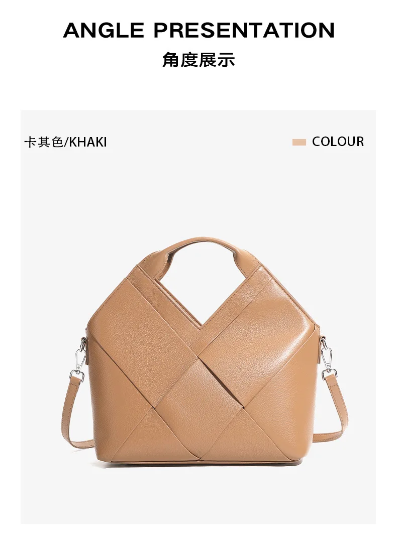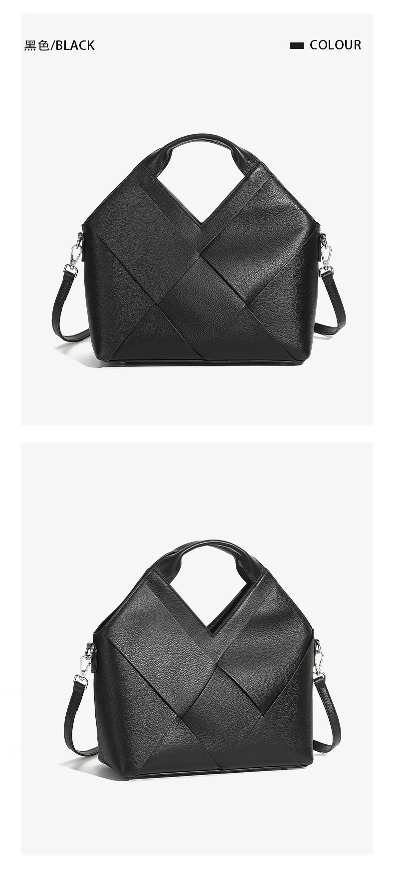 Braided Handbag Women Top-Handle Bags Genuine Leather Soft Leather Handbag Inverted Triangle Design Fashionable Crossbody Bag