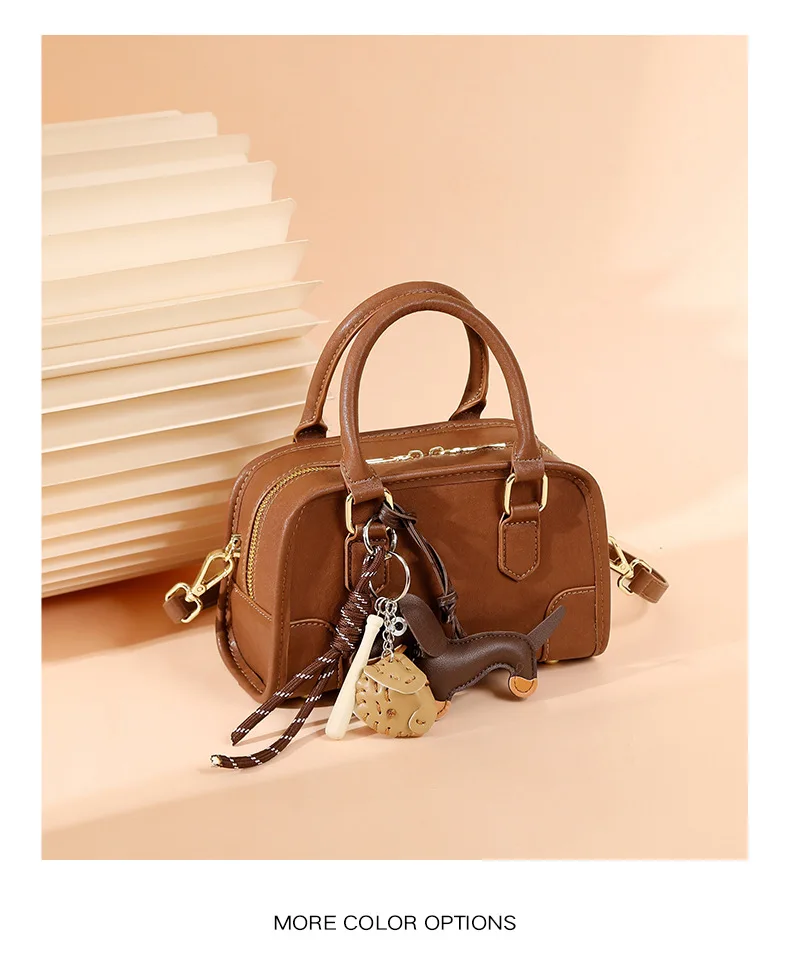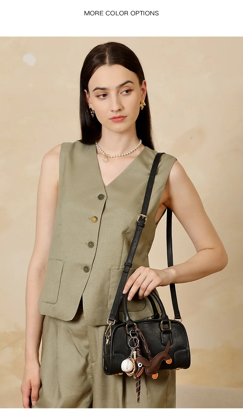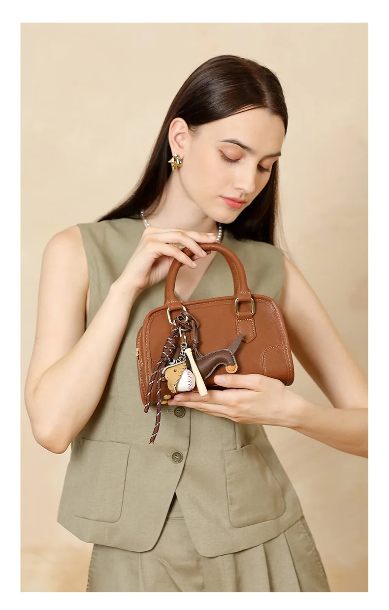 Cowhide Bowling Bag Women's Handbag Genuine Leather Boston Bag Shoulder Crossbody Bag Ladies Purses and Handbags
