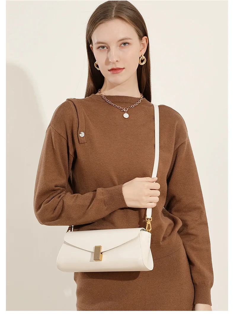 Genuine Leather Baguette Bag Women's Fashion Handbag Shoulder Crossbody Bag Ladies Purses and Handbags Wedding Bridesmaid Bag