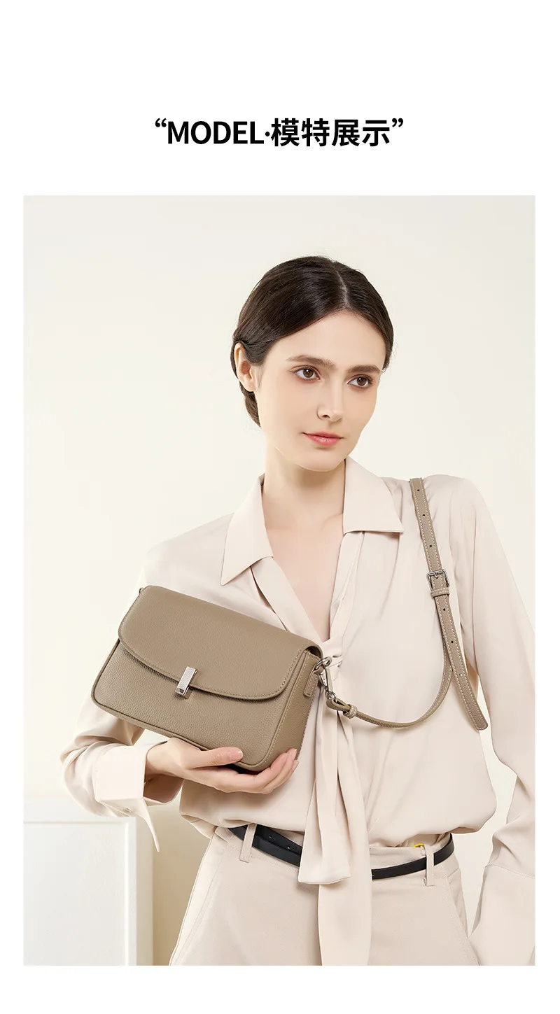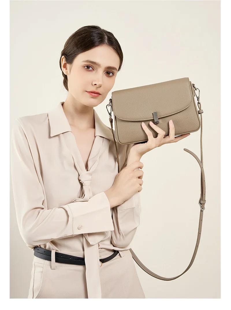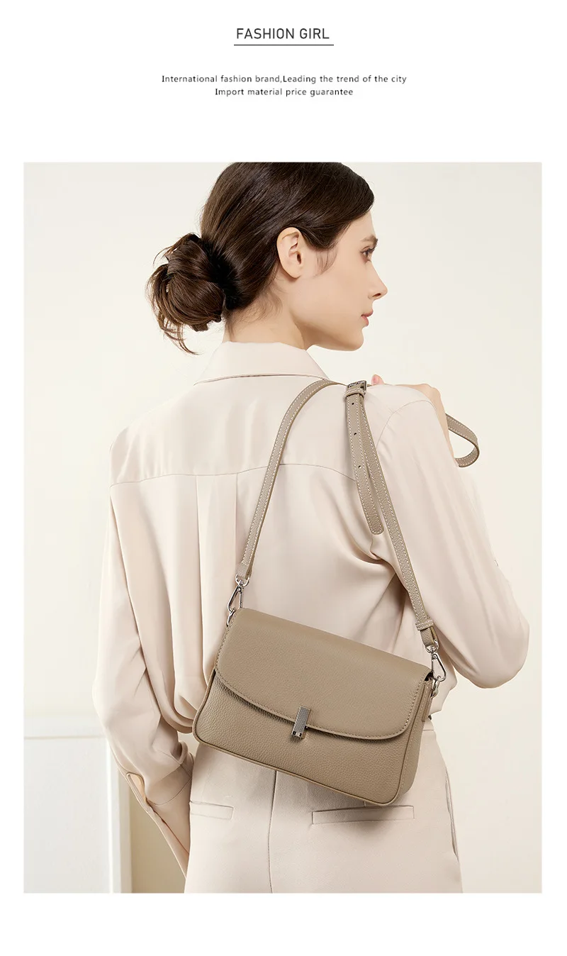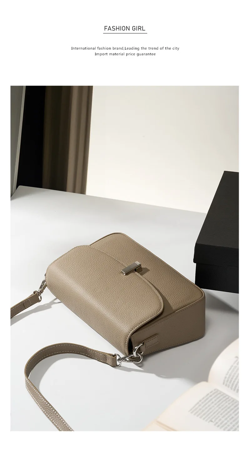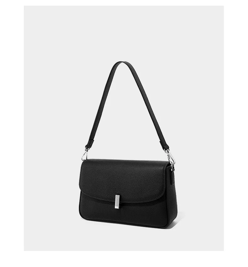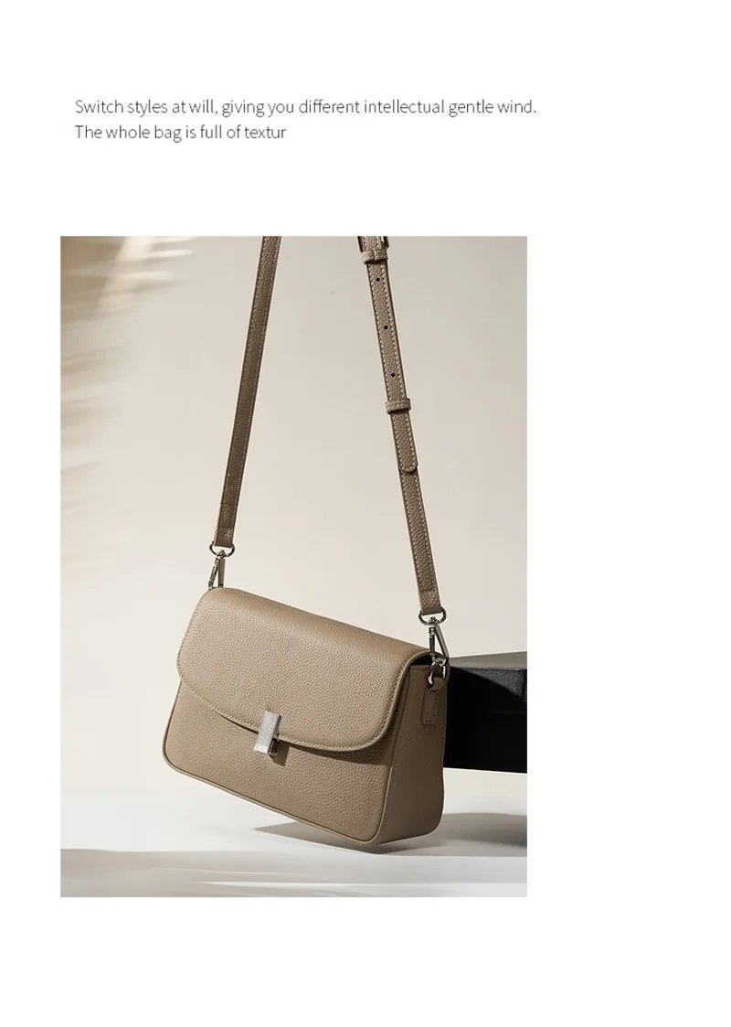 Genuine Leather Crossbody Bag Women's Fashion Handbag Lychee Pattern Shoulder Bag Ladies Flip Bag Two Shoulder Straps