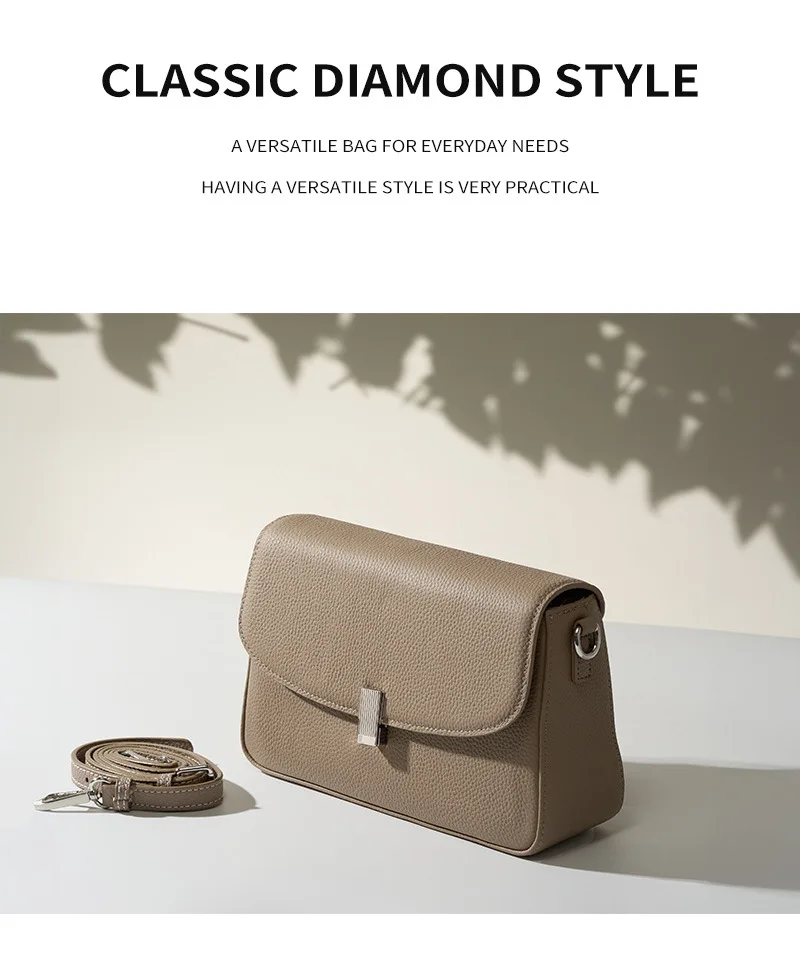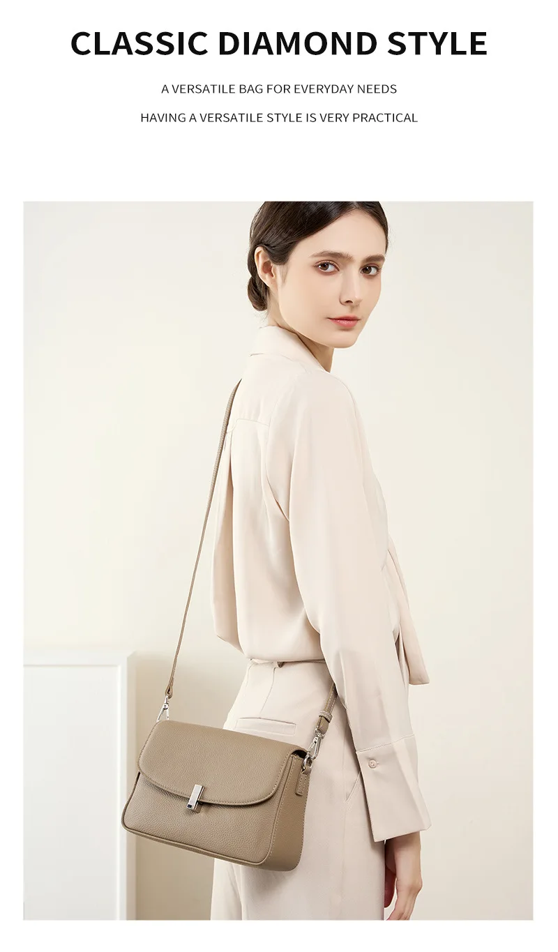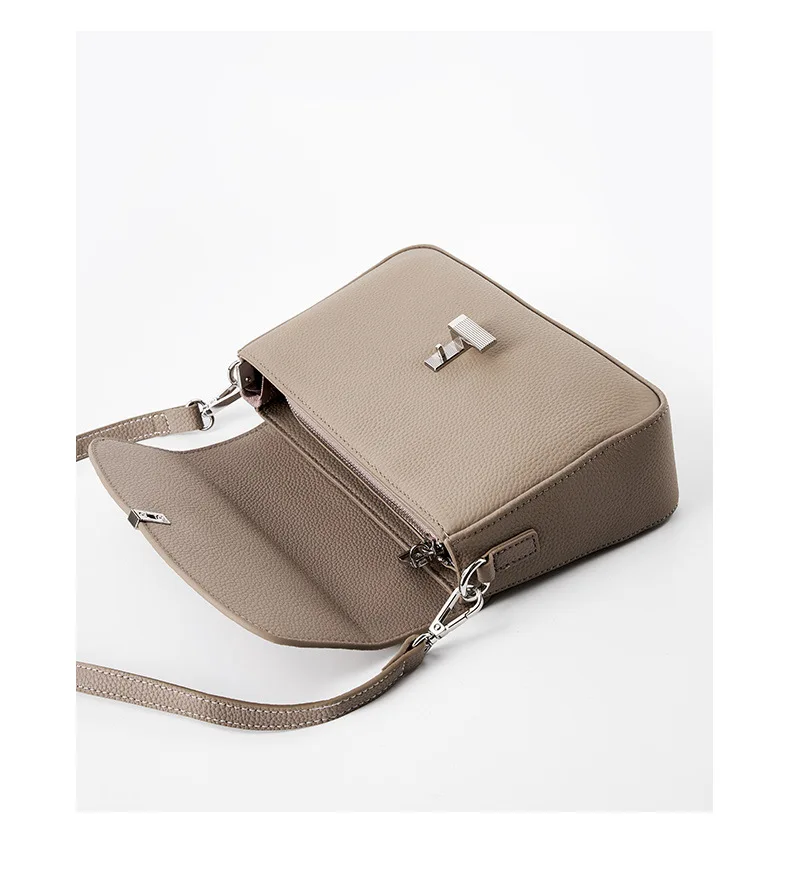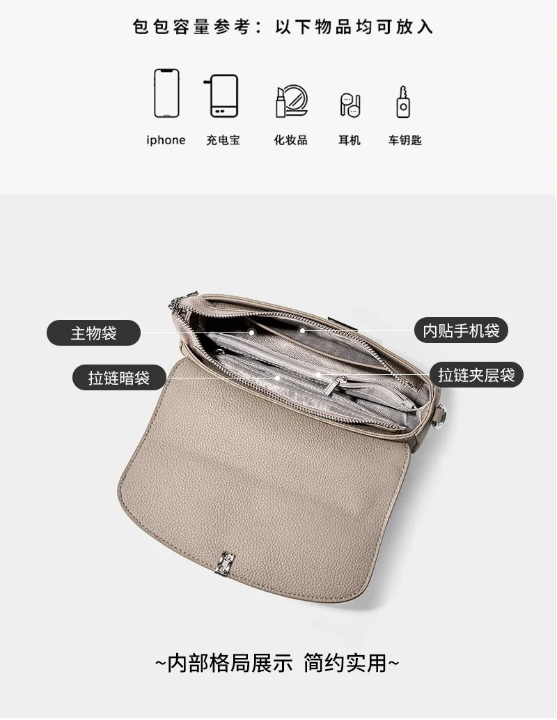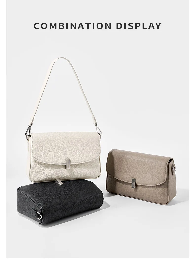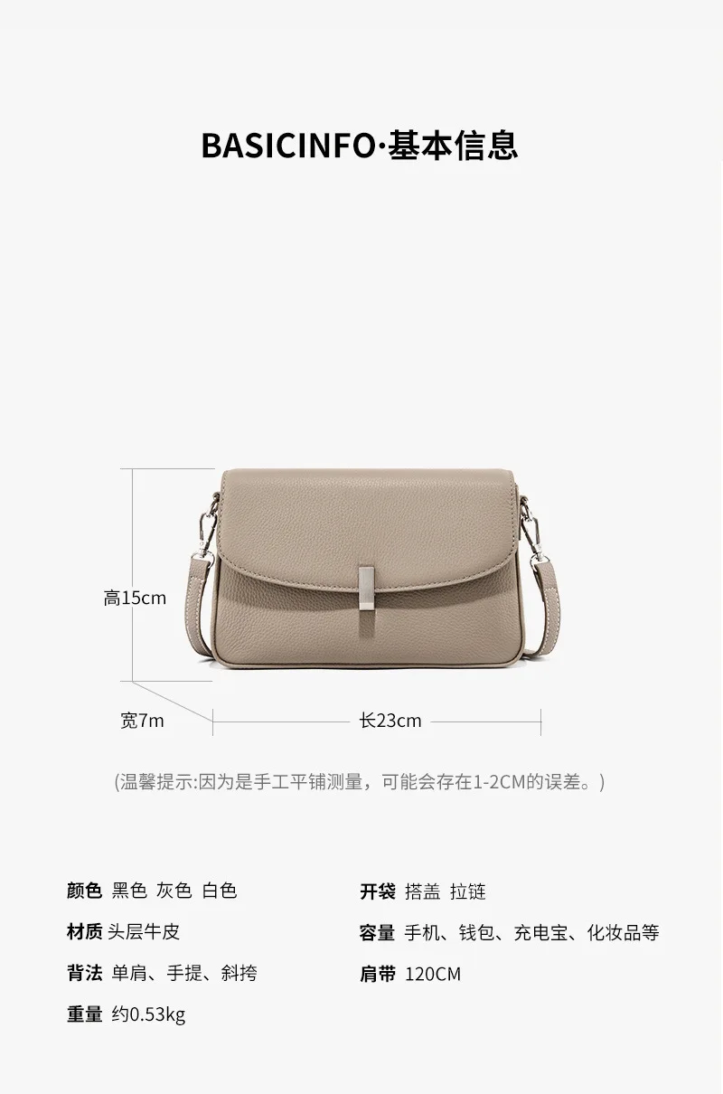 Genuine Leather Crossbody Bag Women's Fashion Handbag Lychee Pattern Shoulder Bag Ladies Flip Bag Two Shoulder Straps