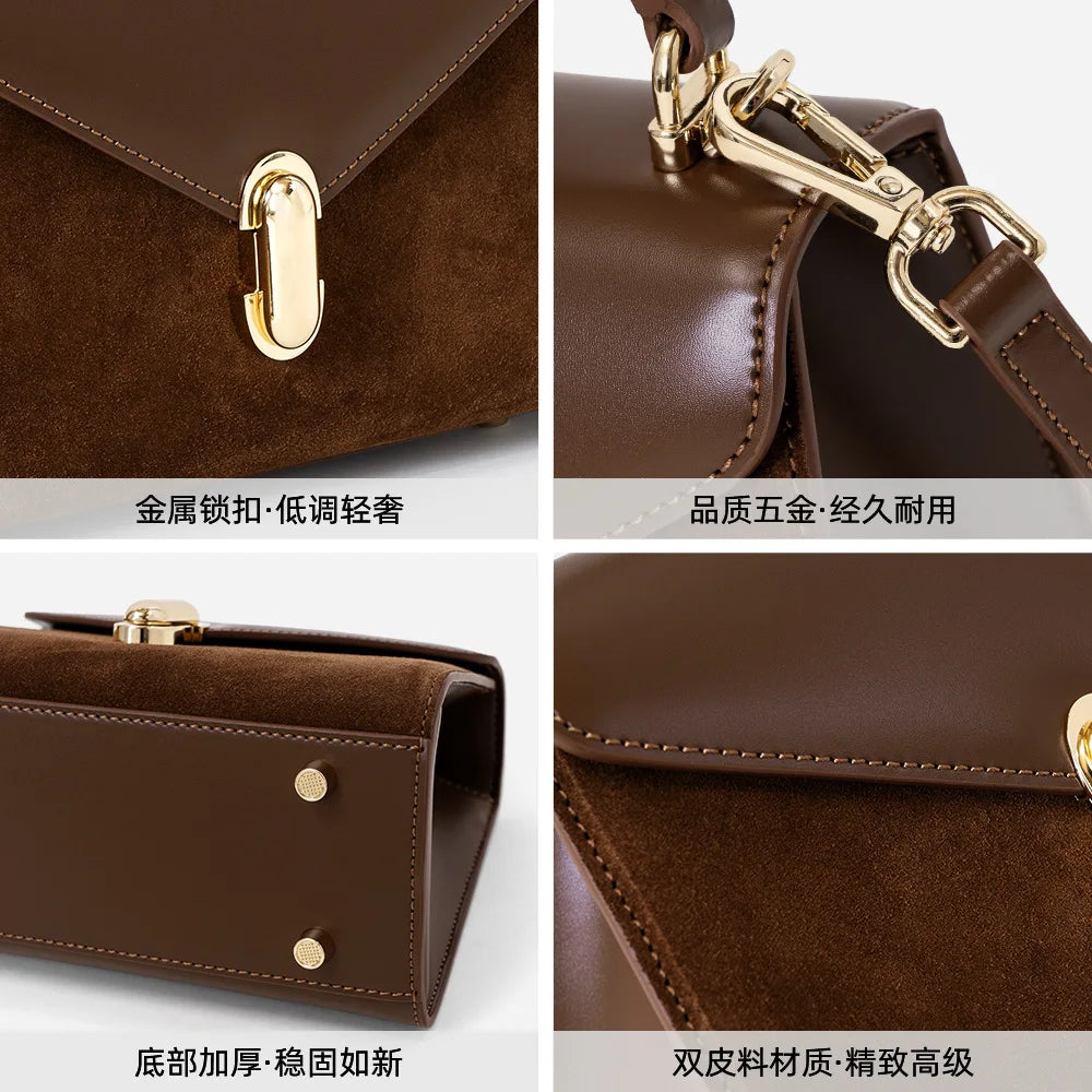 Korean Style Handbag Small Shoulder Bag New Luxury Feel Commuter Minimalist Crossbody Small Square Genuine Leather Women Bag