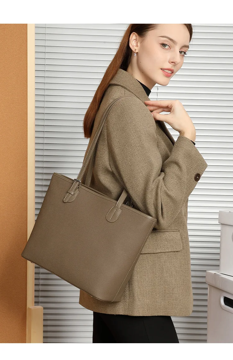 Large Capacity Genuine Leather Tote Bag for Women 2025 Spring Summer Fashion Versatile Shoulder Bucket Bag