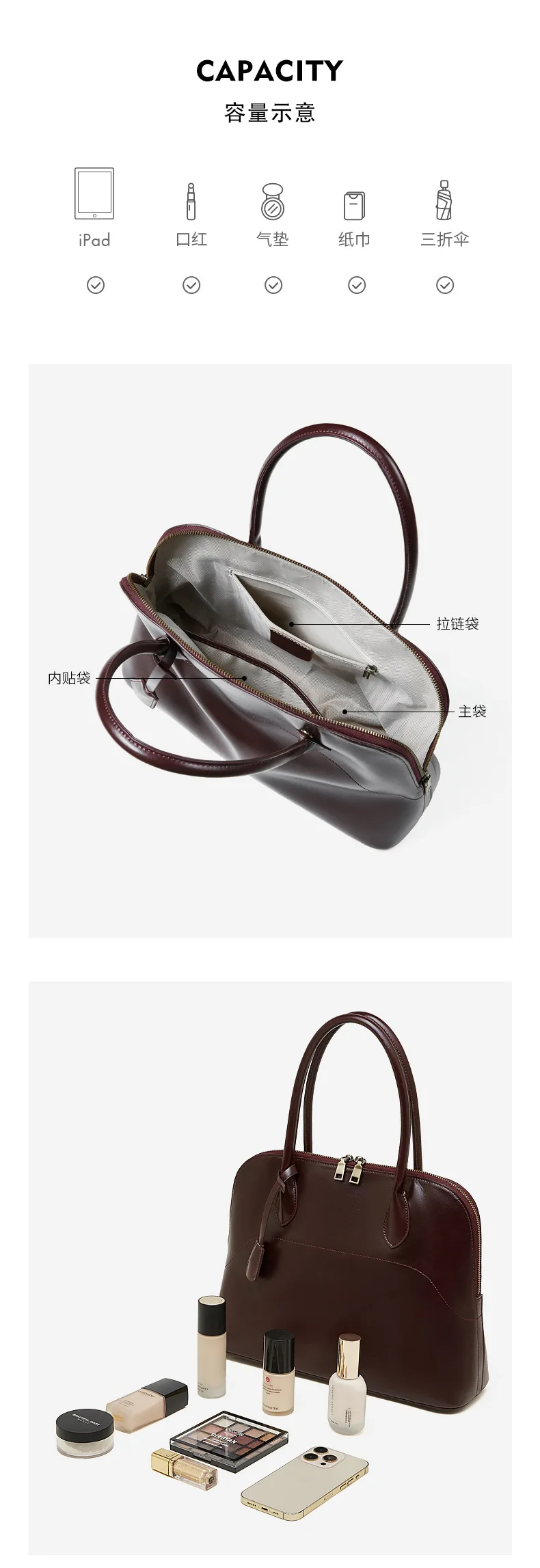 Luxury Handmade Genuine Swift Leather Shell Tote Bag Large Capacity Bowling Style Handbag for Women