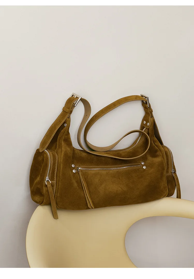 Vintage Leather Women Bag Crossbody Shoulder Handbag Soft Cowhide Motorcycle Bag Luxury Feel