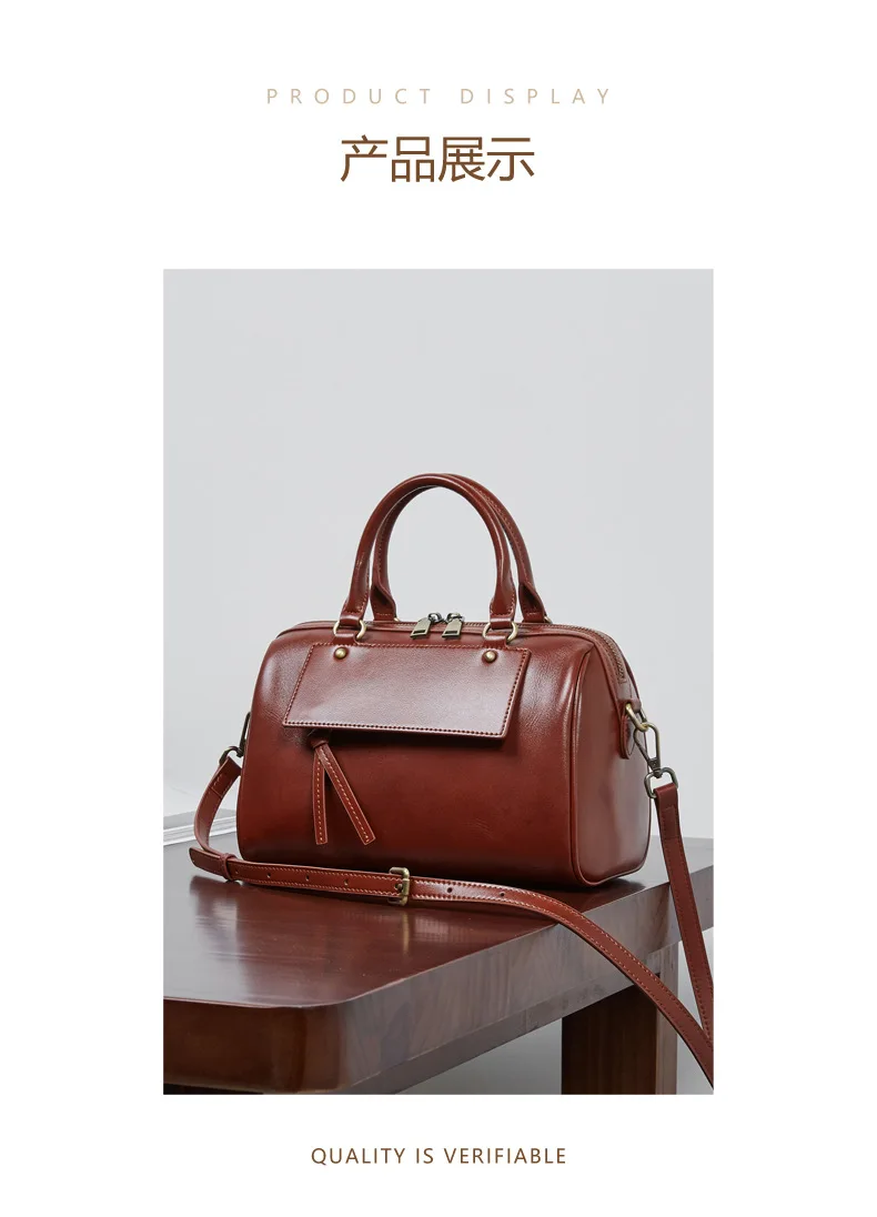 Winter New Leather Boston Pillow Bag Fashion Casual Handbag Cowhide Shoulder Crossbody Bag for Women