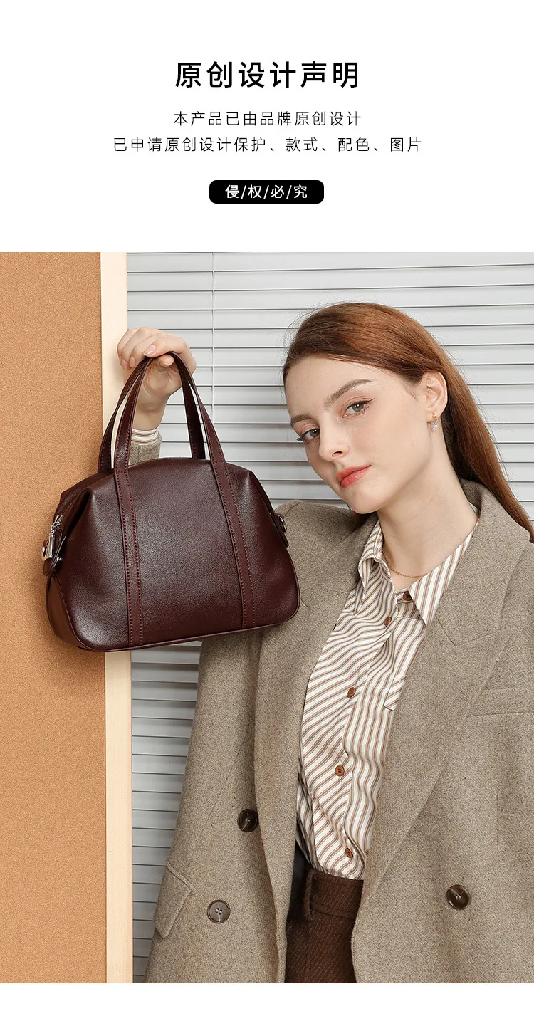 Women Genuine Leather Shoulder Bag 2025 Spring Summer Elegant Niche Boston Pillow Handbag Crossbody Bag