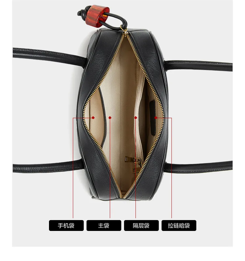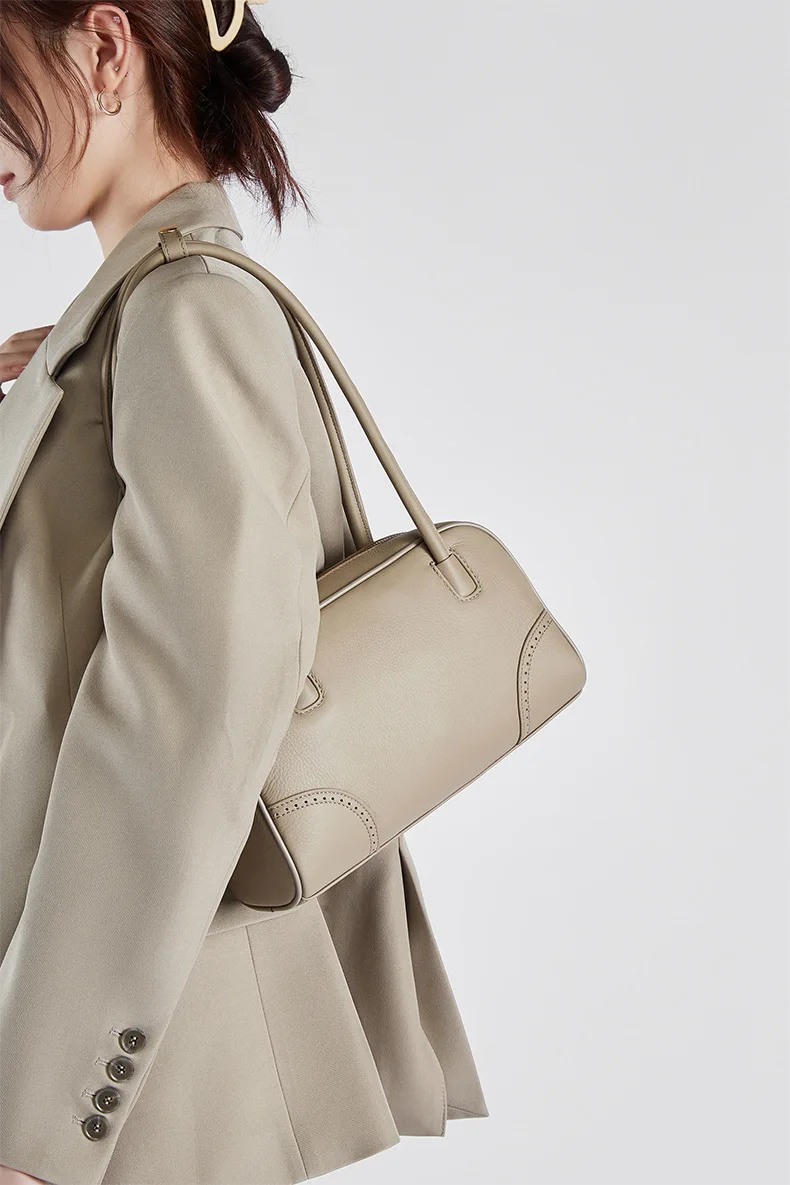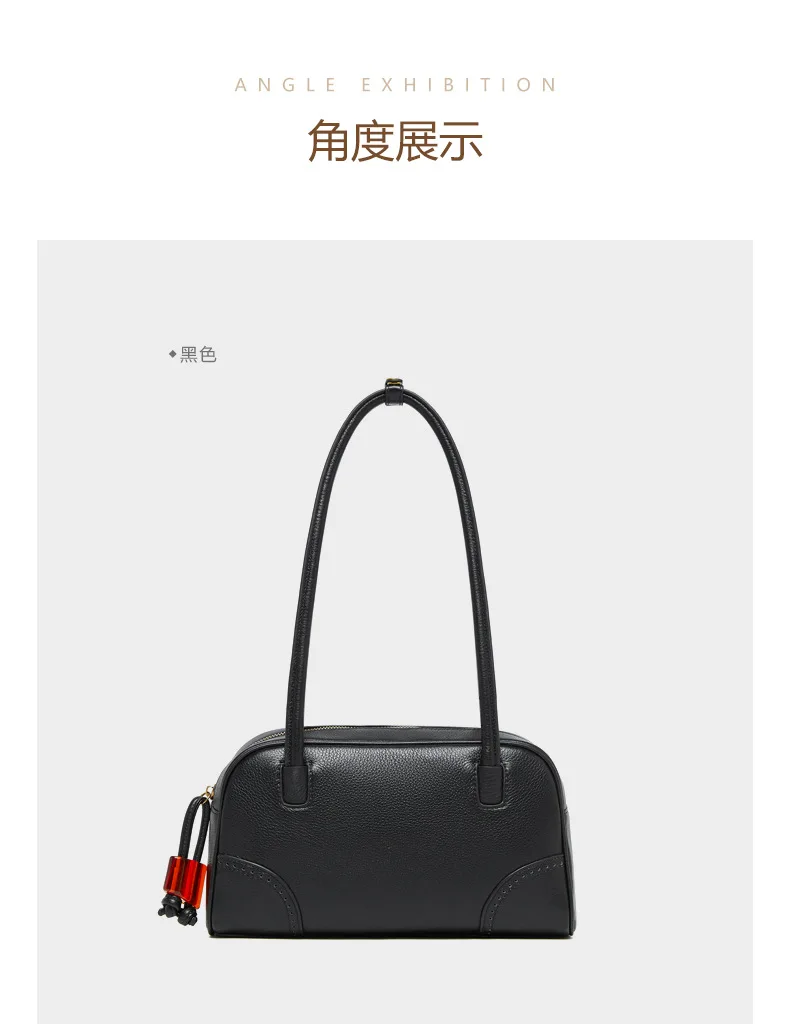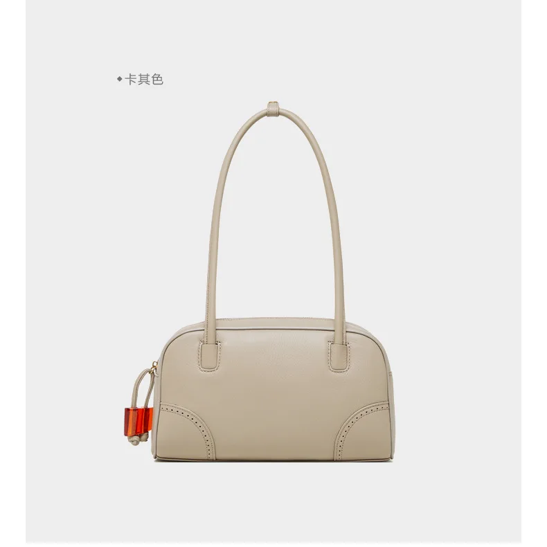 Women Vintage Genuine Leather Handbag Large Capacity Shoulder Underarm Tote Bowling Bag for Daily Use